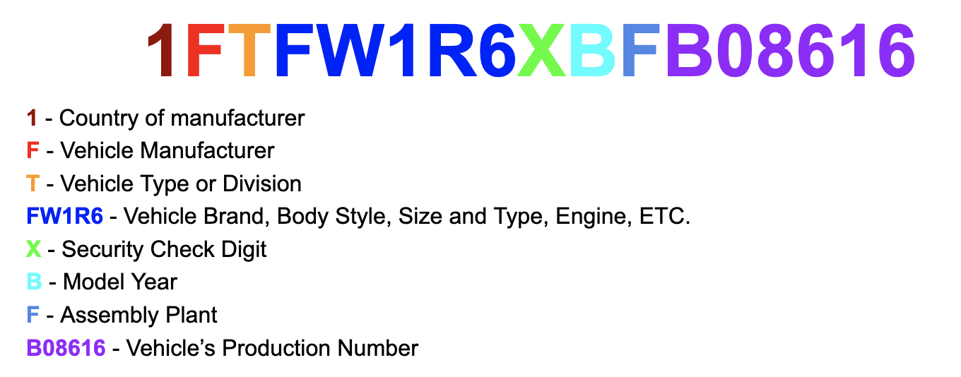 There are eight different components in a VIN, each revealing information about a vehicle. From the country of the manufacturer to the production number, you can glean a lot of information using these seventeen digits.